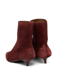 Longiforma suede boots dark red suede upper kitten heel pointed toe ankle height zip fastening Made in Italy Composition Lining: Calf Leather 100% Outer: Calf Suede 100% Sole: Rubber 100%, Calf Leather 100%