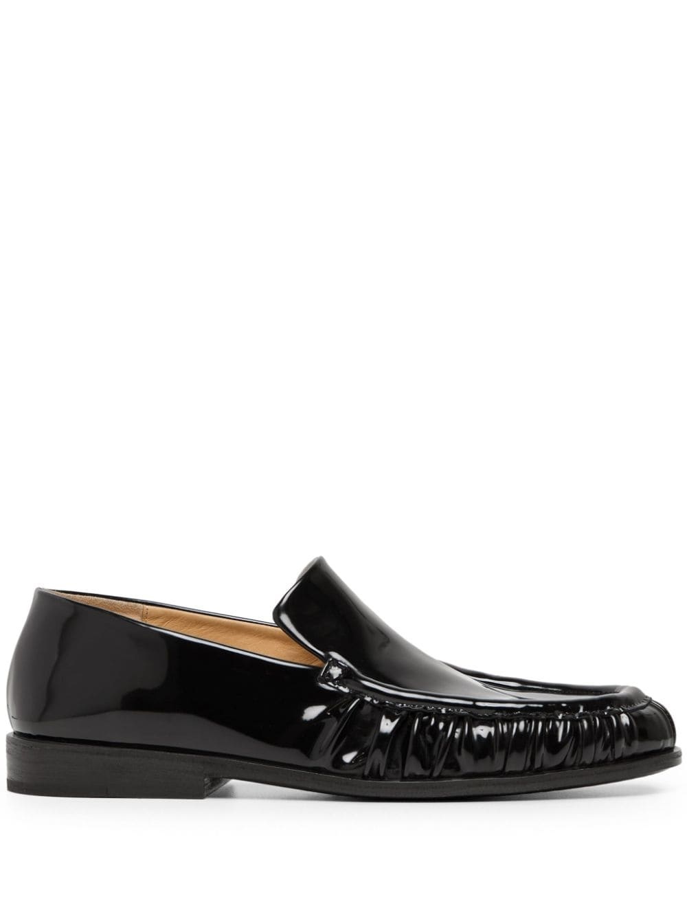 Mocassino patent-leather loafers black calf leather patent finish round toe slip-on style branded insole stacked heel Made in Italy Composition Lining: Leather 100% Outer: Patent Calf Leather 100% Sole: Leather 100%