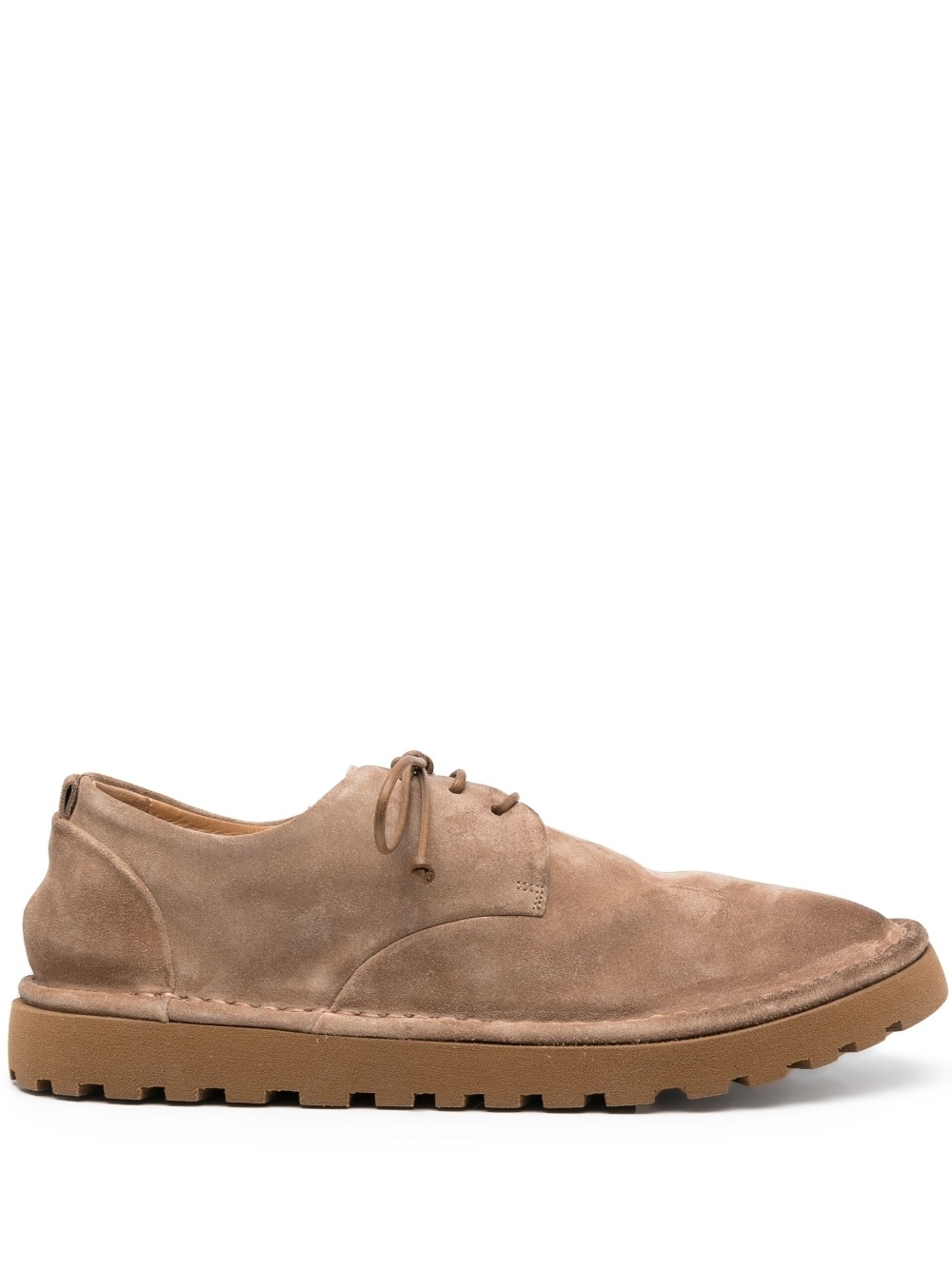 Sancrispa Alta suede derby shoes light brown calf suede/calf leather round toe front lace-up fastening branded leather insole rubber lug sole Made in Italy Composition Lining: Calf Leather 100% Outer: Calf Suede 100% Sole: Rubber 100% SIZE & FIT Measurement HEEL 1.18 in(3 cm) Sole height 0.98 in(2.5 cm)