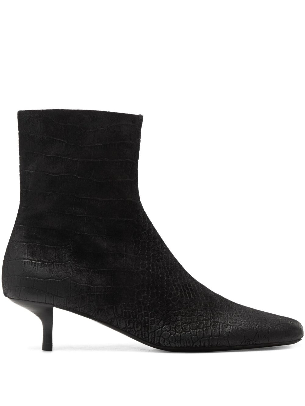 Spazzola square-toe ankle boots Highlights - Black - Embossed texture - Square toe - Kitten heel - Side zip fastening Made in Italy Composition Outer: Leather 100% Lining: Leather 100% Sole: Leather 100%