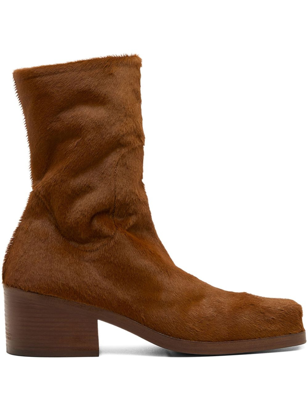 Cassello square-toe boots brown calf hair block heel back zip fastening square toe mid-calf height Made in Italy Composition Outer: Calf Leather 100% Lining: Calf Leather 100% Sole: Calf Leather 100%
