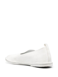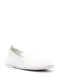 Strasacco round-toe loafers Highlights - Optical white - Calf leather/calf suede - Pull-tab at the heel - Round toe - Slip-on style - Branded insole - Flat rubber sole Made in Italy Composition Suede 100% SIZE & FIT Measurement HEEL 0.59 in(1.5 cm)