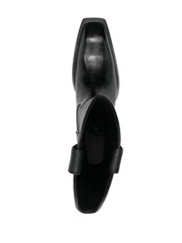 50mm Cowboy boots Highlights - Black - Calf leather - Grained texture/embossed crocodile effect - Panelled design - Pull-on style - 50mm cuban heel - Double pull-tab at the opening - Mid-calf length - Square toe - Branded leather insole - Leather and rubber sole Made in Italy Composition Sole: Calf Leather 100%, Rubber 100% Lining: Calf Leather 100% Outer: Calf Leather 100% SIZE & FIT Measurement CIRCUMFERENCE 14.96 in(38 cm) HEEL 1.96 in(5 cm) HEIGHT 9.84 in(25 cm) Sole height 0.39 in(1 cm)