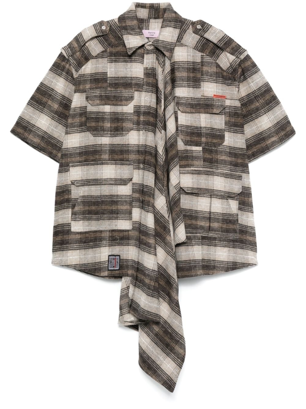 Blanket Safari shirt Highlights - Brown/multicolour - Cotton - Check pattern - Front button fastening - Classic collar - Epaulettes - Drop shoulder - Short sleeves - Two chest flap pockets - Two front flap pockets - Logo patch to the front - Asymmetric hem Imported Composition Cotton 100%