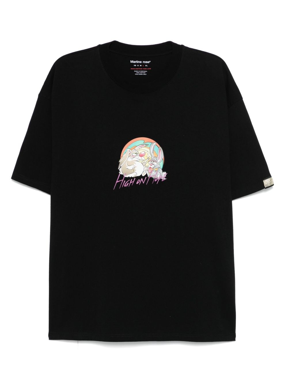 cotton T-shirt Highlights - Black - Crew neck - Short sleeves - Graphic print at the chest Imported Composition Cotton 100% SIZE & FIT Model measurements Height 6 ft 1 in(1.85 m) Bust/Chest 38.18 in(97 cm) Hips 36.61 in(93 cm) Waist 31.49 in(80 cm) Measurement CHEST 51.96 in(132 cm) SLEEVE LENGTH 8.66 in(22 cm) LENGTH 29.13 in(74 cm) Shoulder Width 24.4 in(62 cm) FittingInformation Designed for an oversized fit, offering additional room throughout Made from a midweight non-stretch fabric, this piece offers minimal elasticity when worn