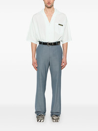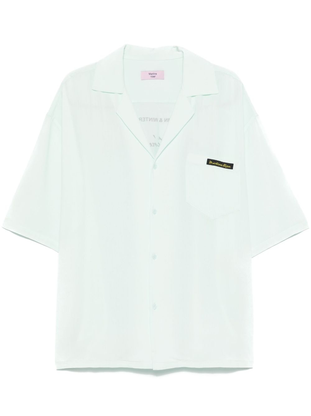 logo-patch shirt Highlights - Mint green - Front button fastening - Chest patch pocket - Notched collar - When buying this unisex item, keep in mind that it is graded in standard men's sizing. Imported Composition Viscose 100% SIZE & FIT Model measurements Height 5 ft 10 in(1.78 m) Bust/Chest 33.46 in(85 cm) Hips 36.22 in(92 cm) Waist 23.22 in(59 cm) Measurement CHEST 60.62 in(154 cm) SLEEVE LENGTH 12.2 in(31 cm) LENGTH 30.31 in(77 cm) WAIST 60.62 in(154 cm) Shoulder Width 25.98 in(66 cm) FittingInformation This unisex piece is designed for an oversized fit whether you usually select women's or men's sizes Made from a lightweight non-stretch fabric