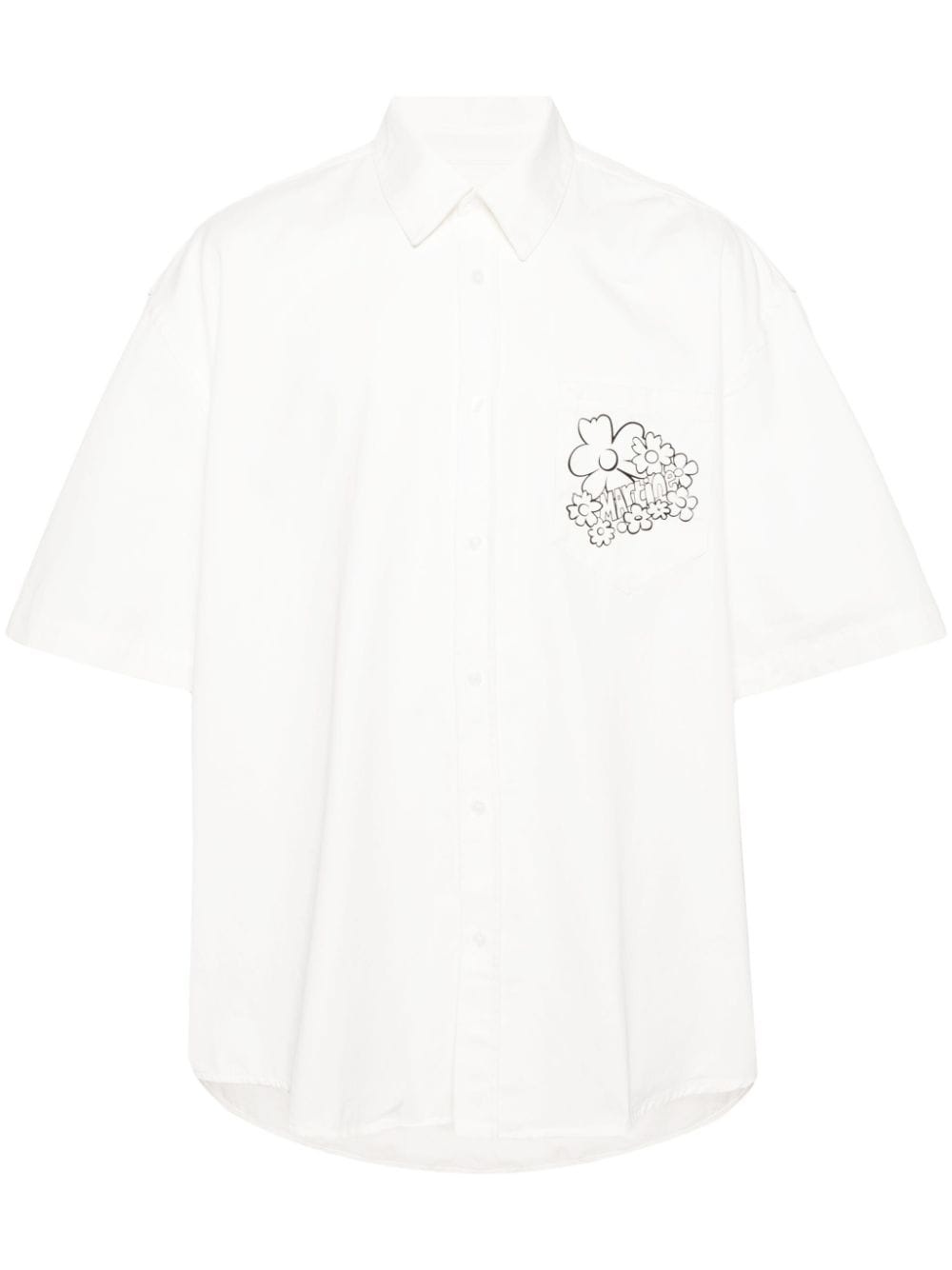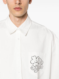 logo-print cotton shirt Highlights - Off-shoulder - Cotton - Twill weave - Floral and logo print at the chest and rear - Straight-point collar - Front button fastening - Drop shoulder - Half-length sleeves - Chest patch pocket - Curved hem Imported Composition Cotton 100% SIZE & FIT Model measurements Height 6 ft 2 in(1.87 m) Bust/Chest 36.41 in(92.5 cm) Hips 35.43 in(90 cm) Waist 29.52 in(75 cm) FittingInformation Designed for an oversized fit, offering additional room throughout Made from a midweight non-stretch fabric This piece fits true to size – take your usual size Washing instructions Machine Wash