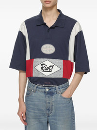 Oversized polo t-shirt Highlights - Blue/multicolour - Cotton - Panelled design - Polo collar - Short sleeves - Logo print to the front - Straight hem Imported Composition Cotton 100% SIZE & FIT Measurement CHEST 52.75 in(134 cm) SLEEVE LENGTH 12.59 in(32 cm) LENGTH 32.28 in(82 cm) Shoulder Width 22.83 in(58 cm) Washing instructions Read Manufacturer Guidelines