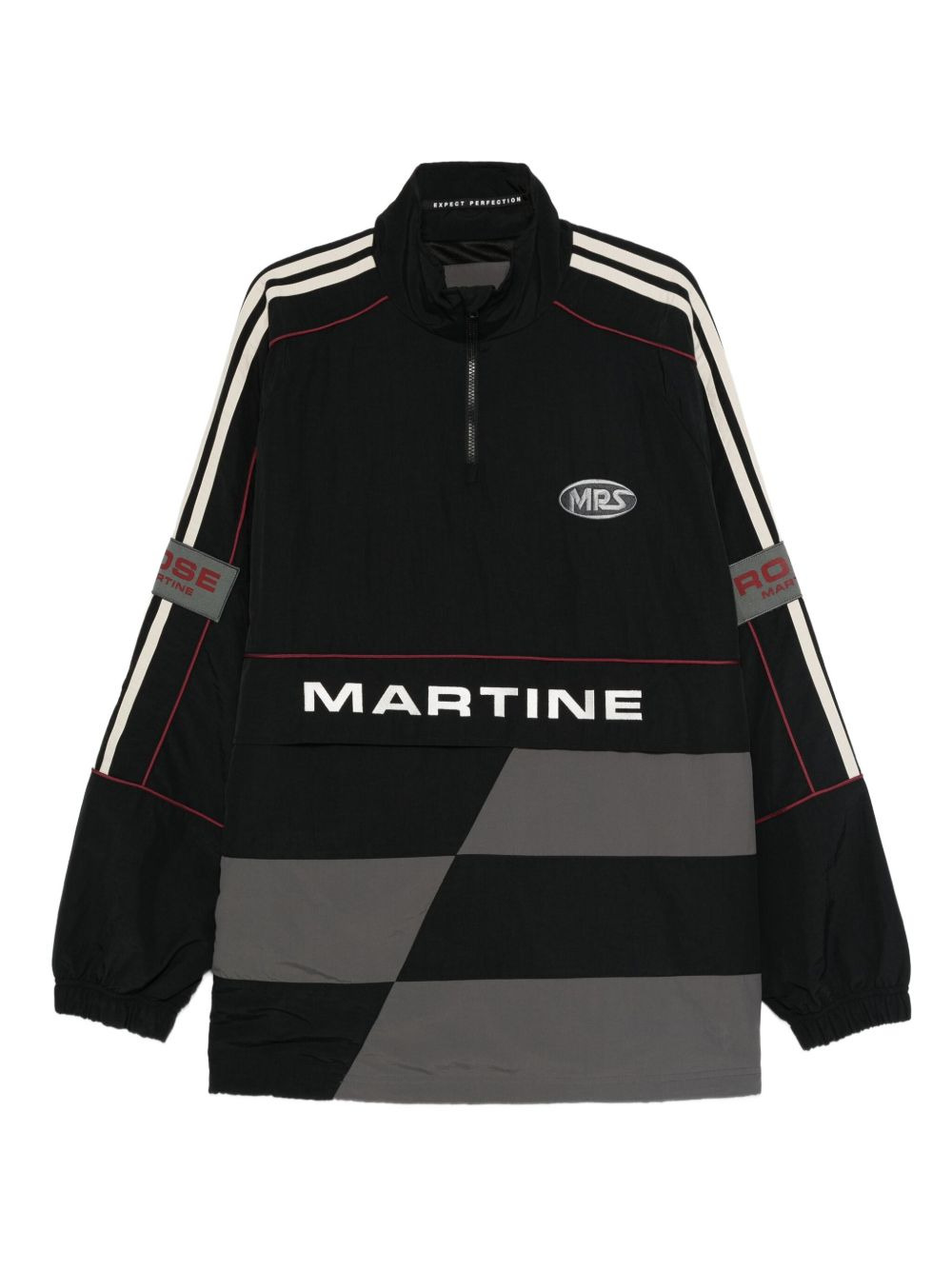 panelled logo-emblem zip-up sweater Highlights - Black - Grey panels - Half zip fastening - Stripe detail - Logo emblems Imported Composition Fabric 100% SIZE & FIT Model measurements Height 6 ft 1 in(1.85 m) Bust/Chest 38.58 in(98 cm) Hips 37 in(94 cm) Waist 30.31 in(77 cm) Washing instructions Read Manufacturer Guidelines