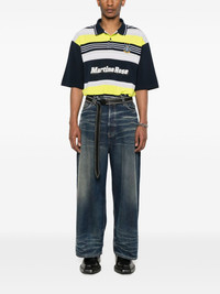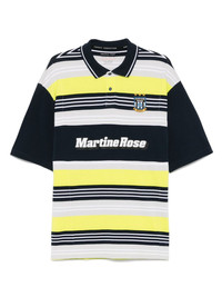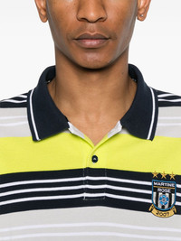 panelled polo shirt Highlights - Navy blue - Front button placket - Polo collar - Horizontal stripe pattern - Embroidered logo Imported Composition Cotton 100% SIZE & FIT Model measurements Height 5 ft 10 in(1.78 m) Bust/Chest 33.46 in(85 cm) Hips 36.22 in(92 cm) Waist 23.22 in(59 cm) FittingInformation This piece is unisex – if you usually select men's sizing expect a loose fit throughout; if you usually select women's sizes, expect an oversized fit Made from a midweight non-stretch fabric, this piece offers minimal elasticity when worn Washing instructions Machine Wash