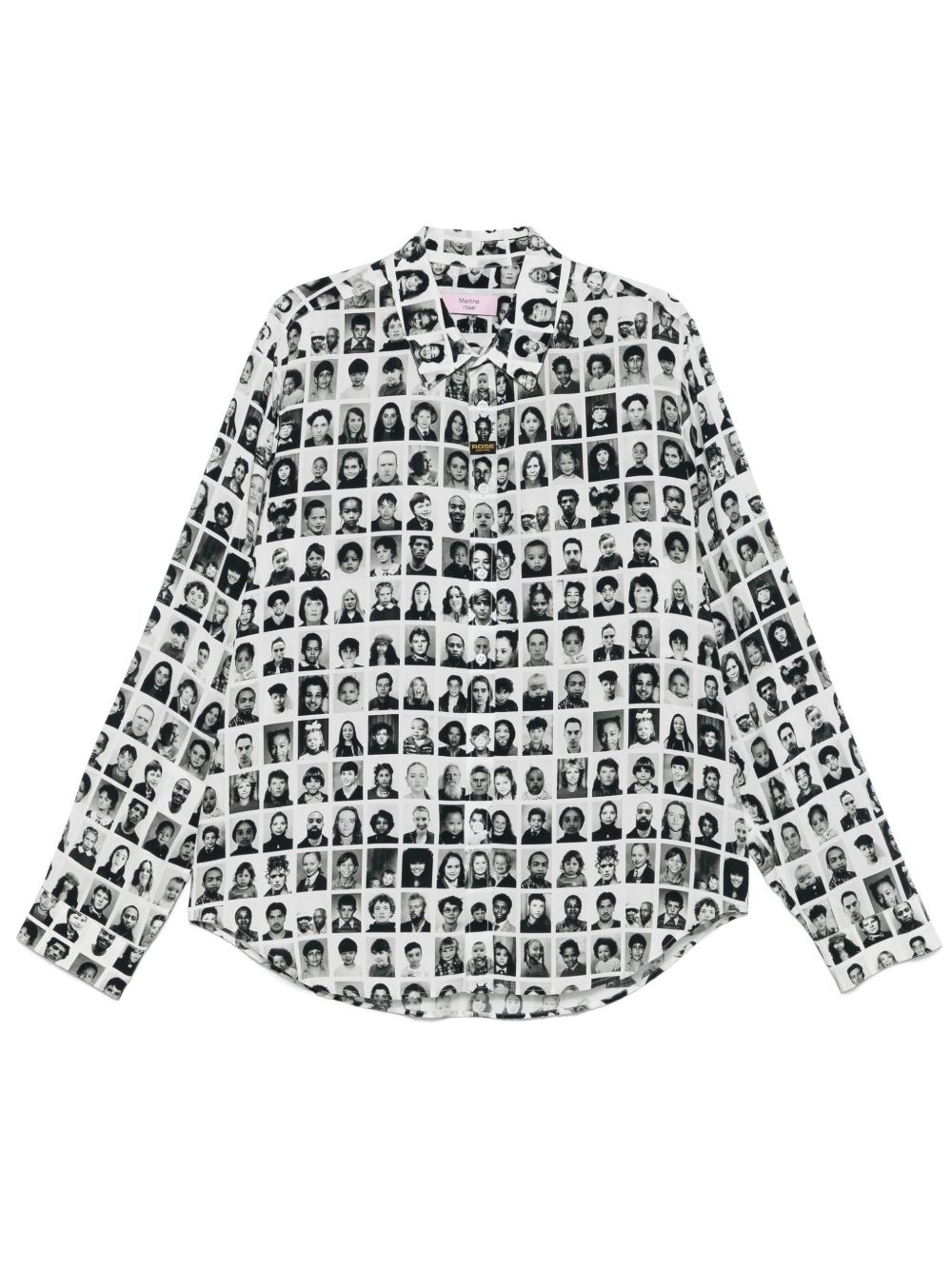 photos-print shirt Highlights - White - Front button fastening - Box-pleat detail - Classic collar - Long sleeves Imported Composition Viscose 100% SIZE & FIT Model measurements Height 6 ft 2 in(1.87 m) Bust/Chest 36.41 in(92.5 cm) Hips 35.43 in(90 cm) Waist 29.52 in(75 cm) FittingInformation Designed to be unstructured, offering a loose fit throughout Made from a lightweight non-stretch fabric, this piece offers minimal elasticity when worn Washing instructions Machine Wash