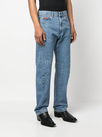 printed straight leg jeans Hailing from south London, Martine Rose dedicates these straight-leg jeans to their beloved hometown by enveloping the pair in a print which names a variety of London underground stations. Highlights - Blue - Cotton - Logo patch to the front - All-over graphic print - High waist - Belt loops - Front button and zip fastening - Classic five pockets - Straight leg - When buying this unisex item, keep in mind that it is graded in standard men's sizing. Made in Italy Composition Cotton 100% SIZE & FIT Model measurements Height 5 ft 11 in(1.8 m) Bust/Chest 31.49 in(80 cm) Hips 36.22 in(92 cm) Waist 25.59 in(65 cm) Washing instructions Machine Wash