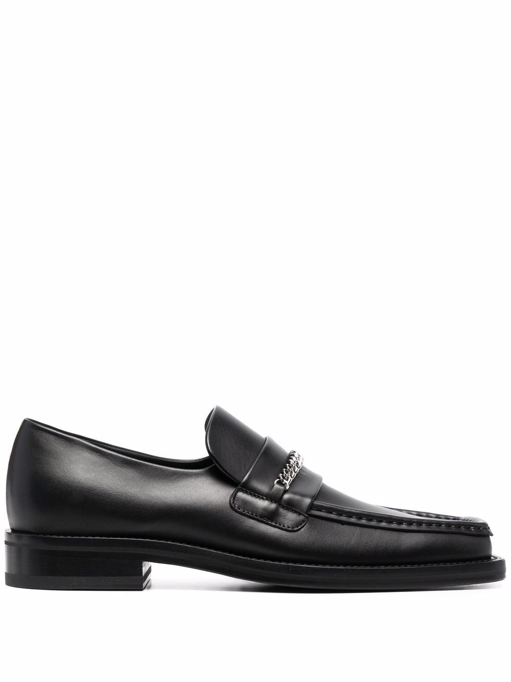 square-toe leather loafers London based brand, Martine Rose is consistently inspired by the cultural melting pot of their hometown. The experts of juxtaposition flaunt their talents in these square-toe loafers, updating a typically conservative style with a contemporary silver chain detail. Made in Italy Composition Outer: Leather 100% Lining: Leather 100% Sole: Leather 100% SIZE & FIT Measurement HEEL 1.18 in(3 cm) Sole height 0.39 in(1 cm)