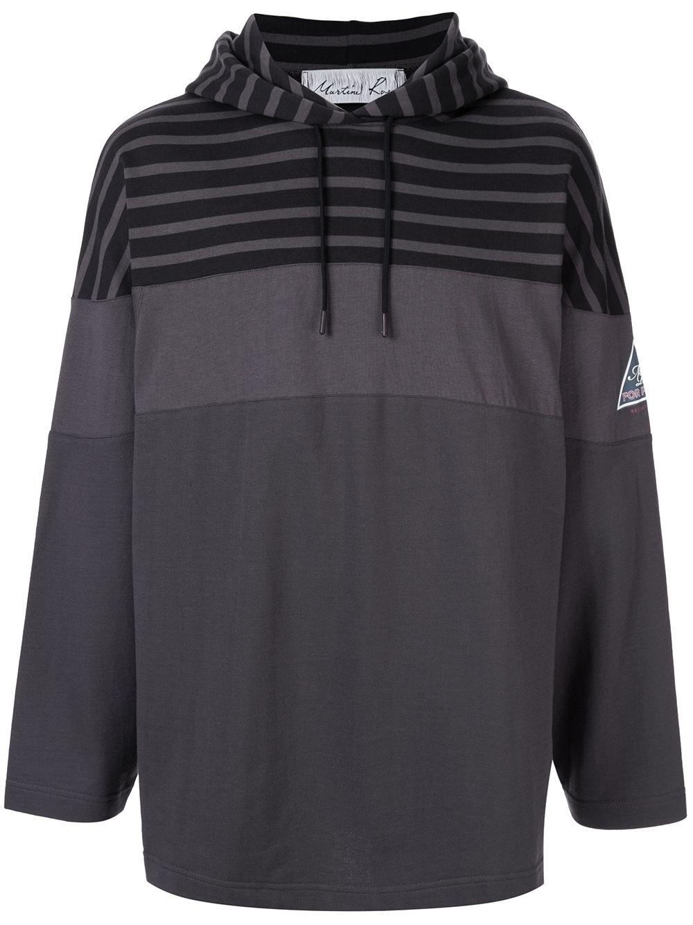 stripe detail hoodie Martine Rose's pieces reflect the label’s South London origins, with clothing that captures the dynamic energy of a community that is defined by its variety of subcultures and traditions. This grey cotton stripe detail hoodie features a drawstring hood, stripes to the chest, a logo to the left arm, stitched panels, long sleeves and a logo tag. Imported Composition Cotton 100% SIZE & FIT Model measurements Height 6 ft 0 in(1.83 m) Bust/Chest 37.79 in(96 cm) Hips 37 in(94 cm) Waist 30.31 in(77 cm) FittingInformation This piece fits true to size. We recommend you get your regular size Cut for an oversized fit Made with a mid-weight fabric Washing instructions Dry Clean Only