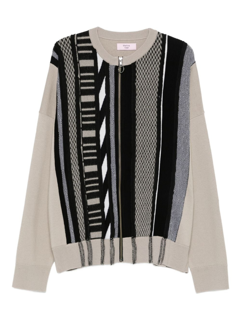 striped zip-up cardigan Highlights - Beige - Stripe pattern - Zip fastening - Crew neck - Long sleeves - Ribbed hem Imported Composition Wool 100% Washing instructions Read Manufacturer Guidelines