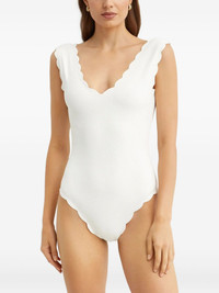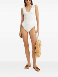 Charleston scalloped v-neck swimsuit Highlights - White - Textured finish - V-neck - Scalloped edges - Be mindful to try on swimwear over your own garments. Imported Composition Polyamide 88%, Elastane 12% SIZE & FIT FittingInformation This piece is only produced in one size; for help with this item's sizing, refer to our product measurements Washing instructions Hand Wash