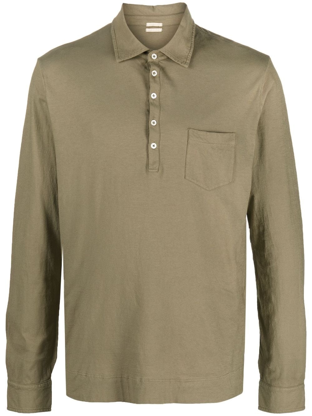 long-sleeve cotton polo shirt khaki cotton chest patch pocket polo collar front button placket long sleeves straight hem Made in Italy Composition Cotton 100% SIZE & FIT Model measurements Height 6 ft 2 in(1.88 m) Bust/Chest 36.61 in(93 cm) Hips 35.82 in(91 cm) Waist 27.95 in(71 cm)
