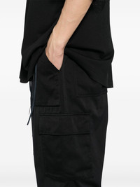 cargo trousers Highlights - Black - Elasticated drawstring waistband - Two side slash pockets - Two side cargo pockets - Two rear flap pockets Imported Composition Cotton 84%, Polyester 16% SIZE & FIT Model measurements Height 6 ft 2 in(1.88 m) Bust/Chest 34.25 in(87 cm) Hips 34.64 in(88 cm) Waist 26.77 in(68 cm) FittingInformation Designed for a tapered leg, offering a loose unrestricted fit over the leg with a closer fit towards the ankle The elasticated waist allows for a comfortable fit Made from a midweight non-stretch fabric