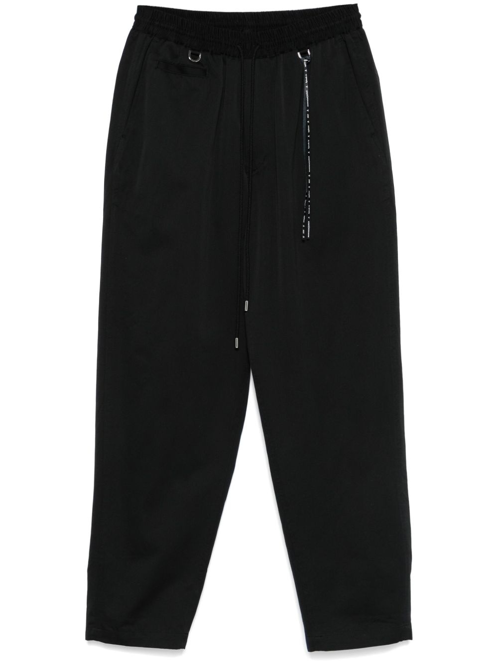 Easy trousers Highlights - Black - Elasticated drawstring waistband - Front patch pocket - Two side inset pockets - Two rear button-fastening pockets Imported Composition Cotton 84%, Polyester 16% SIZE & FIT Model measurements Height 6 ft 0 in(1.84 m) Bust/Chest 35.82 in(91 cm) Hips 37 in(94 cm) Waist 28.34 in(72 cm) FittingInformation Designed for a tapered leg, offering a loose unrestricted fit over the leg with a closer fit towards the ankle The internal drawstring at the hem allows for fitted preferences at the ankle Made from a midweight non-stretch fabric, this piece offers minimal elasticity when worn