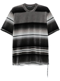 velour T-shirt Highlights - Black/grey - Cotton blend - Velour - Horizontal stripe pattern - Crew neck - Short sleeves - Short side slits - Logo print to the rear - Straight hem Imported Composition Cotton 75%, Polyester 25% SIZE & FIT Model measurements Height 6 ft 2 in(1.87 m) Bust/Chest 37.79 in(96 cm) Hips 37.79 in(96 cm) Waist 30.31 in(77 cm) FittingInformation Designed for a relaxed fit, this piece allows for comfort and movement when worn Made from a midweight non-stretch fabric, this piece offers minimal elasticity when worn