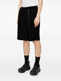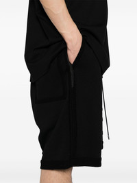 cut-off track shorts Highlights - Black - Elasticated drawstring waistband - Two side slash pockets - Two rear patch pockets Imported Composition Cotton 100% SIZE & FIT Model measurements Height 6 ft 2 in(1.88 m) Bust/Chest 34.25 in(87 cm) Hips 34.64 in(88 cm) Waist 26.77 in(68 cm) FittingInformation Designed for a straight-leg fit, offering an unrestricted and comfortable fit over the leg The elasticated waist allows for a comfortable fit Made from a midweight non-stretch fabric, this piece offers minimal elasticity when worn