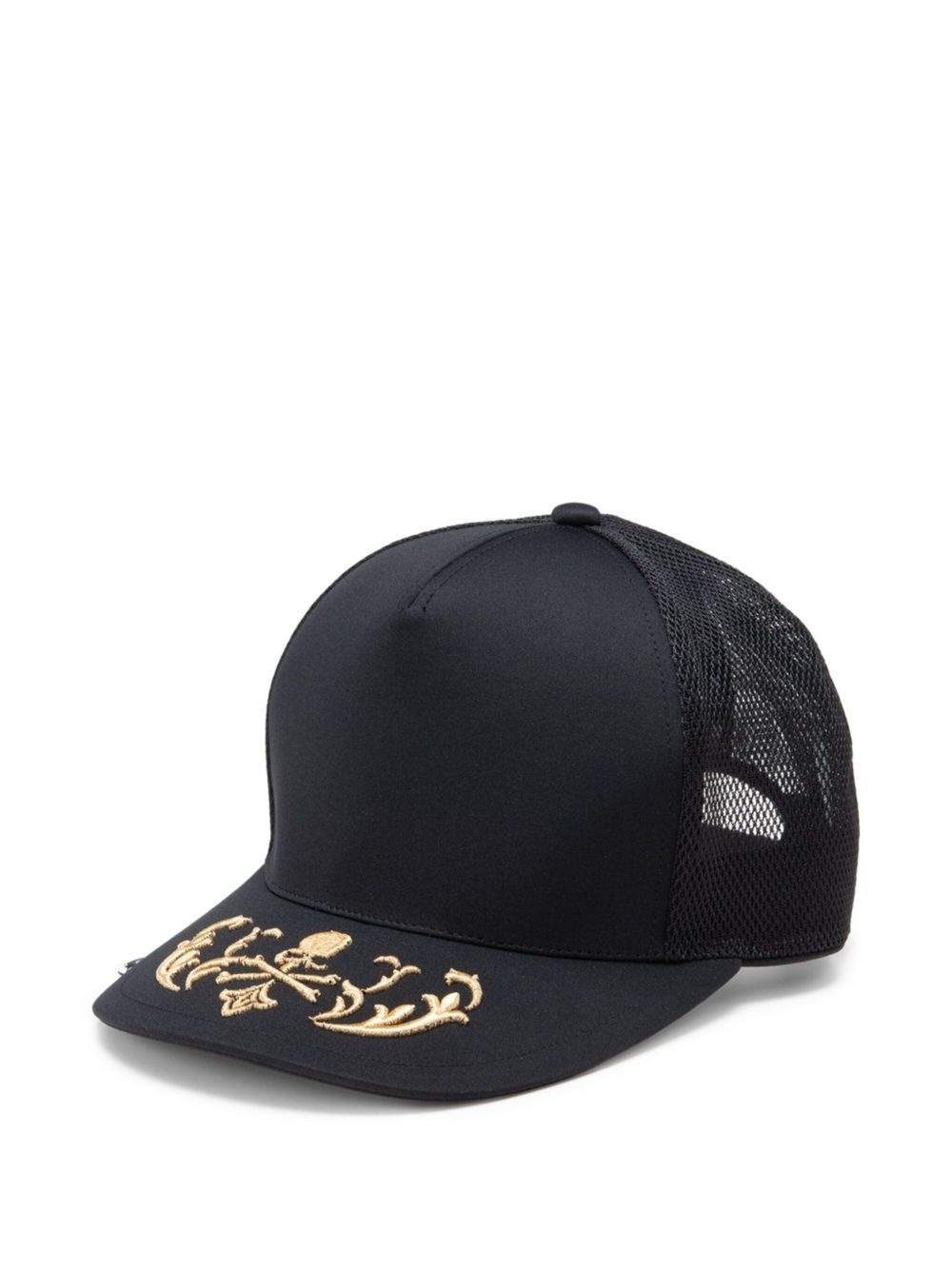 embroidered cap Highlights - Black - Embroidered design - Curved peak - Adjustable strap to the rear Imported Composition Polyester 100% SIZE & FIT Measurement BRIM 3.34 in(8.5 cm) CIRCUMFERENCE 20 in(50.8 cm)