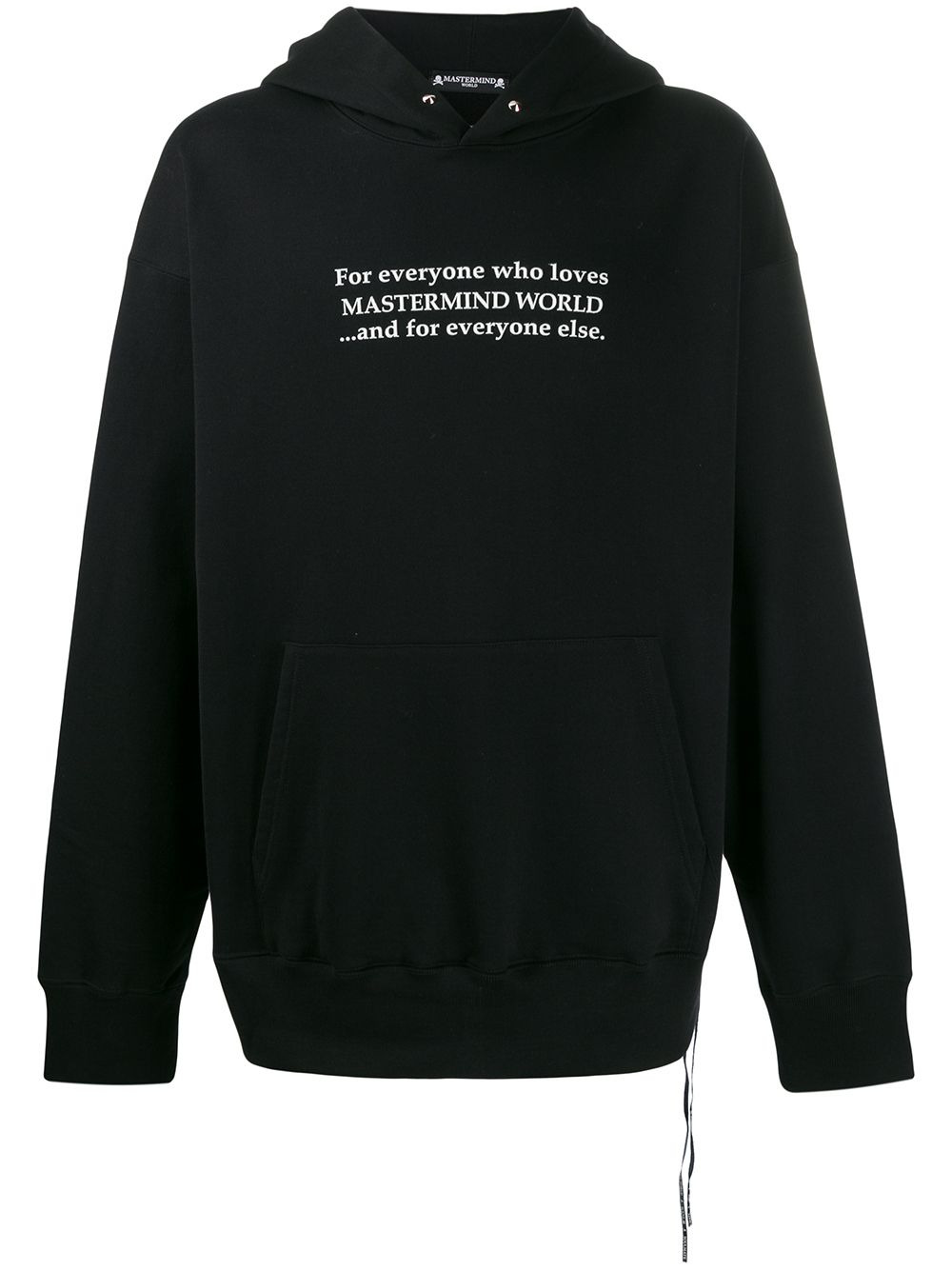 graphic print relaxed-fit hoodie Black cotton graphic print relaxed-fit hoodie from MASTERMIND WORLD featuring dropped shoulders, long sleeves, a kangaroo pocket, a ribbed hem and cuffs and a straight hem. Imported Composition Cotton 100% SIZE & FIT Model measurements Height 6 ft 2 in(1.87 m) Bust/Chest 38.18 in(97 cm) Hips 36.61 in(93 cm) Waist 29.13 in(74 cm) FittingInformation This piece fits true to size. We recommend you get your regular size Cut for a loose fit Made with a mid-weight fabric Washing instructions Hand Wash