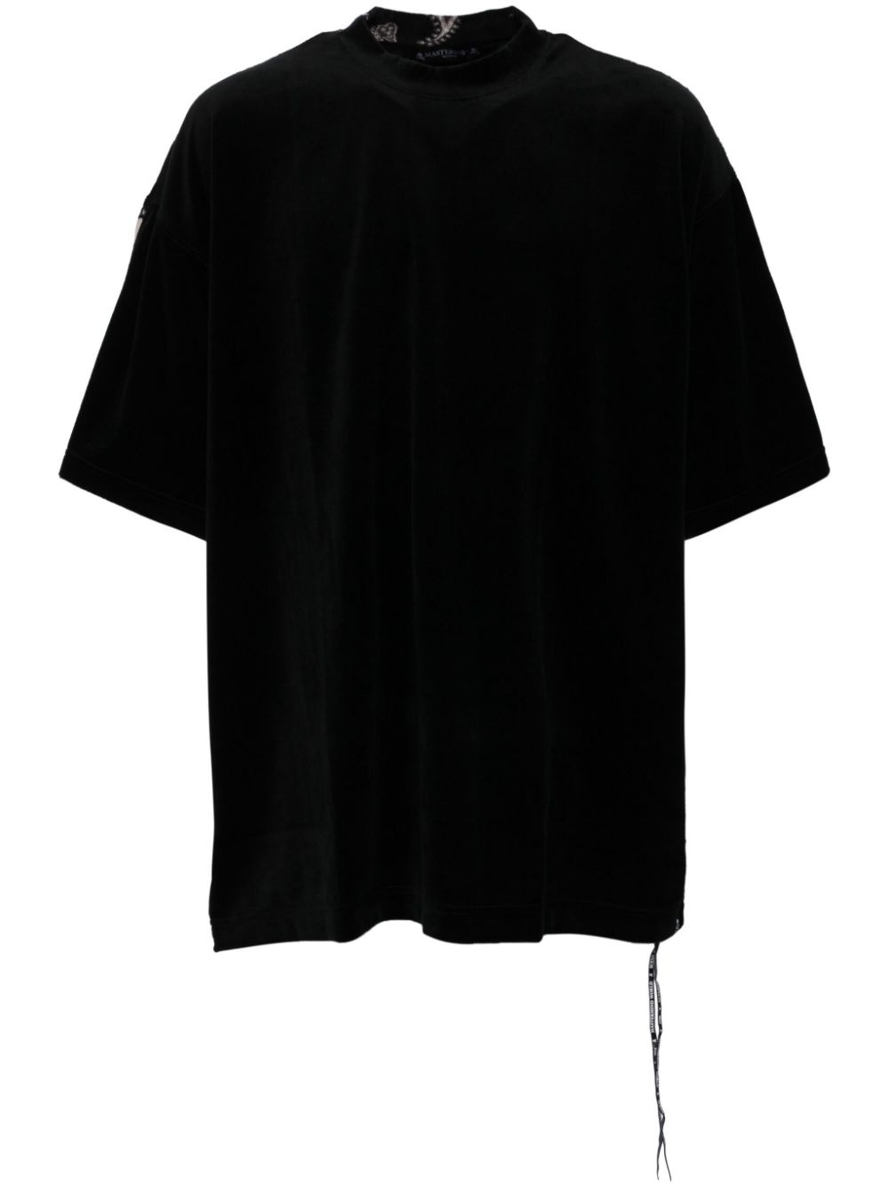 graphic print short sleeves T-shirt Highlights - Black/grey - Cotton blend - Velvet - Crew neck - Graphic print to the rear - Logo print to the rear - Mini logo tag - Straight hem - Short sleeves Imported Composition Cotton 75%, Polyester 25% SIZE & FIT Model measurements Height 6 ft 2 in(1.88 m) Bust/Chest 34.25 in(87 cm) Hips 34.64 in(88 cm) Waist 26.77 in(68 cm) FittingInformation Designed for an oversized fit, offering additional room throughout Made from a midweight non-stretch fabric, this piece offers minimal elasticity when worn