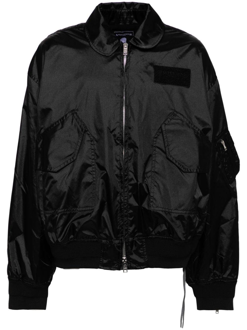 logo-embroidered shirt jacket Highlights - Black/white - Rounded collar - Front two-way zip fastening - Two front flap pockets - Ribbed cuffs and hem Imported Composition Outer: Nylon 100% Lining: Polyester 100% SIZE & FIT Model measurements Height 6 ft 1 in(1.85 m) Bust/Chest 35.43 in(90 cm) Hips 36.22 in(92 cm) Waist 28.74 in(73 cm) FittingInformation Designed to be unstructured, offering a loose fit throughout Made from a midweight non-stretch fabric