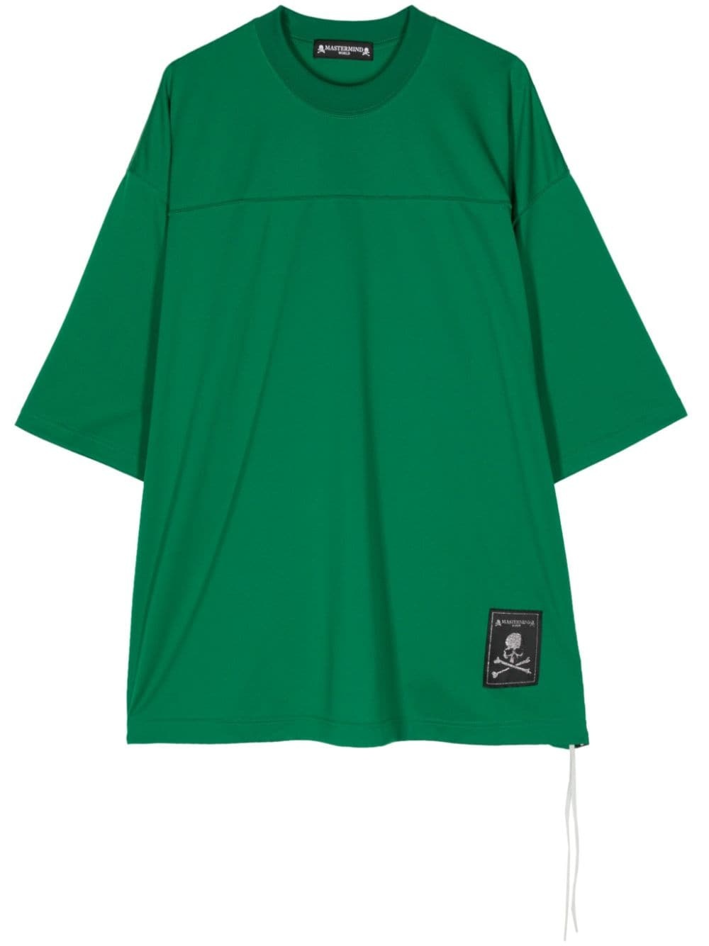 logo-print crew-neck T-shirt Highlights - Forest green - Skull print - Logo patch to the front - Logo print to the rear - Crew neck - Drop shoulder - Short sleeves - Straight hem Imported Composition Polyester 100%