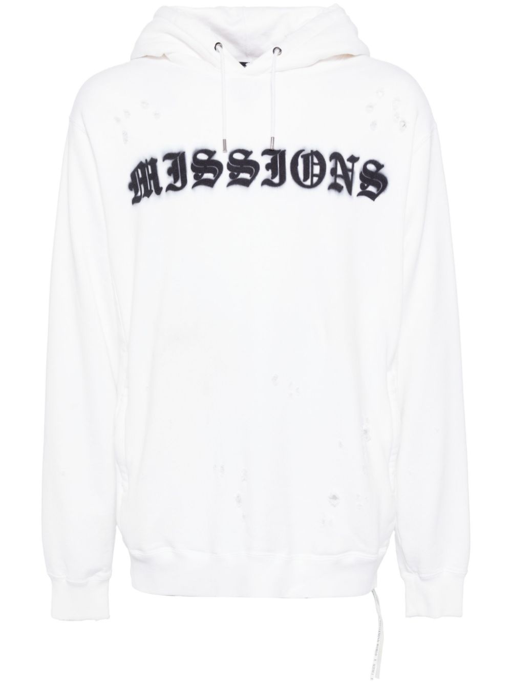 logo print hoodie Highlights - White - Two side zip-fastening pockets - Slouchy drawstring hood - Distressed effect - Ribbed cuffs and hem Imported Composition Cotton 100% SIZE & FIT Model measurements Height 6 ft 2 in(1.88 m) Bust/Chest 34.25 in(87 cm) Hips 34.64 in(88 cm) Waist 26.77 in(68 cm) FittingInformation Designed for an oversized fit, offering additional room throughout Made from a midweight non-stretch fabric, this piece offers minimal elasticity when worn