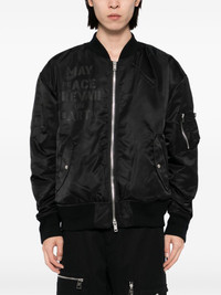 logo-printed bomber jacket Highlights - Black/white - Front two-way zip fastening - Slogan print to the front - Logo print to the rear - Padded design - Two front flap pockets - Long sleeves - Ribbed cuffs and hem - Straight hem - Silk lining Imported Composition Outer: Nylon 100% Lining: Silk 100% SIZE & FIT Model measurements Height 6 ft 2 in(1.87 m) Bust/Chest 33.07 in(84 cm) Hips 35.43 in(90 cm) Waist 26.77 in(68 cm) FittingInformation Designed to be unstructured, offering a loose fit throughout The ribbed hem offers a close, comfortable fit Made from a midweight non-stretch fabric