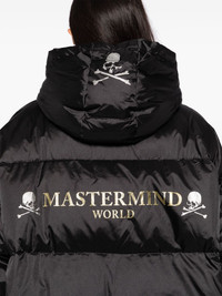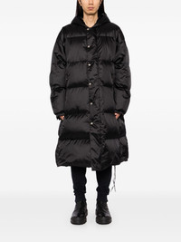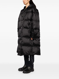 logo-printed padded coat Highlights - Black - Classic hood - Front press-stud and zip fastening - Elasticated hem - Long sleeves Imported Composition Filling: Down 90%, Feather 10% Lining: Silk 100% Outer: Nylon 100% SIZE & FIT Model measurements Height 6 ft 1 in(1.85 m) Bust/Chest 35.43 in(90 cm) Hips 36.22 in(92 cm) Waist 28.74 in(73 cm) FittingInformation Designed for an oversized fit, offering additional room throughout Made from a padded non-stretch fabric, giving it no natural elasticity