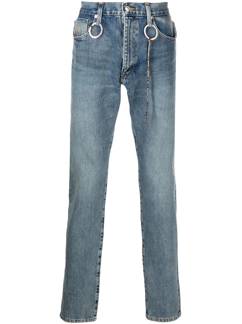 mid-rise slim fit jeans indigo blue cotton-denim logo print to the rear faded effect mid-rise button fly fastening keyring attachment slim cut short rear zip fastening Imported Composition Cotton 100% SIZE & FIT Model measurements Height 6 ft 2 in(1.88 m) Bust/Chest 38.18 in(97 cm) Hips 37 in(94 cm) Waist 29.92 in(76 cm) Washing instructions Dry Clean Only