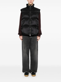 puffer vest Highlights - Black - Quilted finish - Down-feather filling - Front two-way zip fastening - Funnel neck - Two zip-fastening pockets - Zip fastening - Graphic print to the rear - Full lining - Internal slip pockets - Straight hem Imported Composition Filling: Down 90%, Feather 10% Outer: Nylon 100% SIZE & FIT Model measurements Height 6 ft 2 in(1.89 m) Bust/Chest 35.03 in(89 cm) Hips 34.64 in(88 cm) Waist 28.34 in(72 cm) FittingInformation Designed for a relaxed fit, this piece allows for comfort and movement when worn Made from a padded non-stretch fabric, giving it no natural elasticity Measurement LENGTH 29.52 in(75 cm) WAIST 48.81 in(124 cm) BUST 50.39 in(128 cm) Shoulder Width 21.25 in(54 cm)
