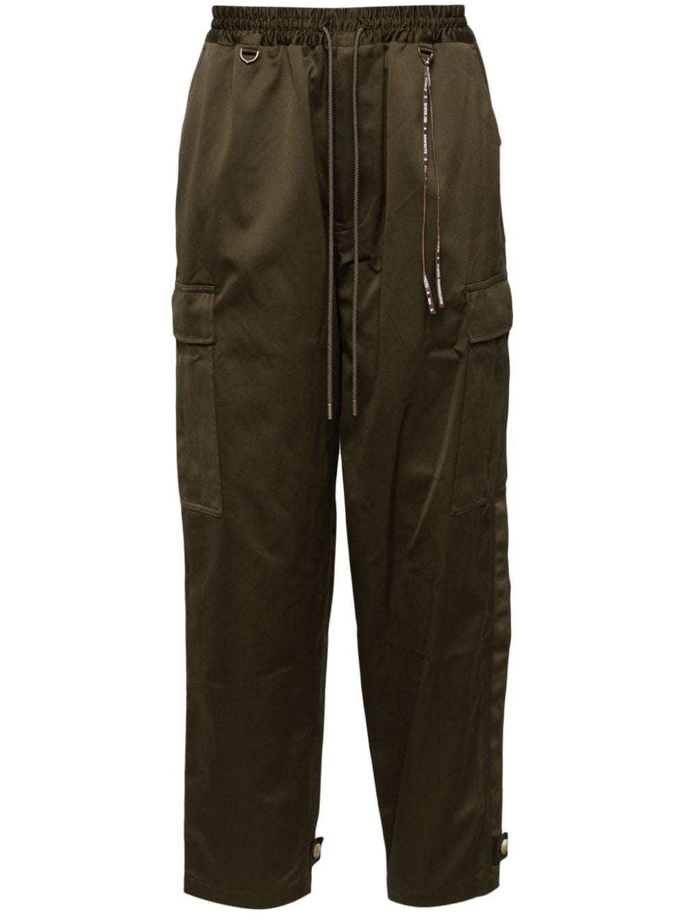 tapered cargo trousers Highlights - Olive green - Cotton - Concealed front zip fastening - Elasticated drawstring waistband - Two side slash pockets - Two side cargo pockets - Two rear flap pockets - Grosgrain ribbon trim - Embroidered logo to the rear - Tapered leg - Full-length Imported Composition Cotton 100%