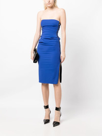 ruched strapless dress Highlights - White - Ruched bodice - Strapless - Side zip fastening - Fitted waistline - Straight hem - Knee-length Imported Composition Body: Cotton 48%, Polyamide 45%, Elastane 7% SIZE & FIT Model measurements Height 5 ft 9 in(1.76 m) Bust/Chest 31.1 in(79 cm) Hips 35.03 in(89 cm) Waist 24.4 in(62 cm) FittingInformation Designed for a close fit throughout The vented hem offers movement at the rear Made from a midweight non-stretch fabric, this piece offers minimal elasticity when worn This piece fits true to size – those with curvy hips may wish to take one size up