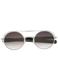 M3128 round-frame sunglasses black silver-tone round frame double bridge nose pads straight arms These glasses come with a protective case. Imported Composition Acetate 100%, Metal 100% SIZE & FIT Measurement Arm Length 5.31 in(13.5 cm) Bridge Width 0.86 in(2.2 cm) Lens Diameter 1.88 in(4.8 cm) Total Width 5.31 in(13.5 cm)