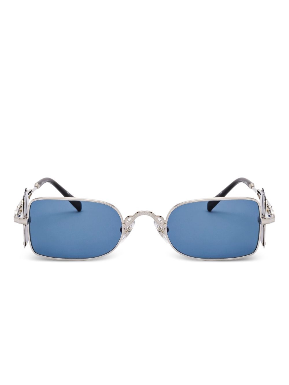 rectangle-frame sunglasses Highlights - Silver-tone - Nose pads - Cut-out detailing - These glasses come with a protective case. Imported Composition Titanium 75% SIZE & FIT Measurement Bridge Width 0.82 in(2.1 cm) Lens Diameter 1.88 in(4.8 cm) Total Width 5.19 in(13.2 cm) Arm Length 5.7 in(14.5 cm)