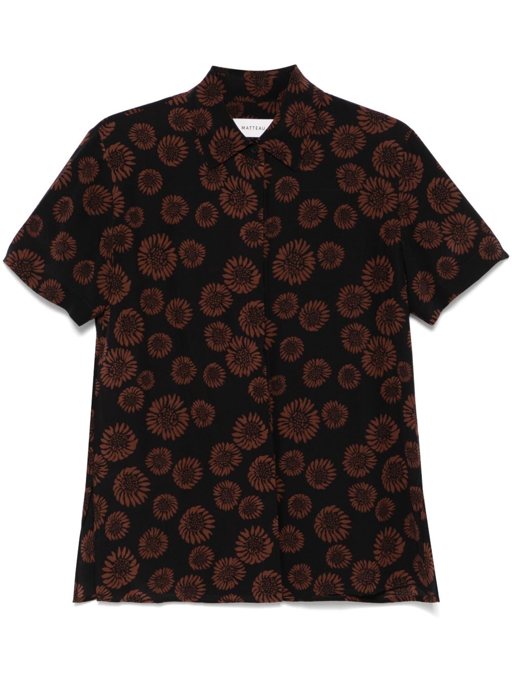 short-sleeve shirt Highlights - Black - Concealed front button fastening - All-over floral print Imported Composition Silk 100% SIZE & FIT Model measurements Height 5 ft 11 in(1.8 m) Bust/Chest 31.49 in(80 cm) Hips 35.82 in(91 cm) Waist 24.8 in(63 cm) FittingInformation Designed to be unstructured, offering a loose fit throughout Made from a midweight non-stretch fabric