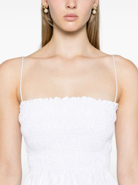 smocked cotton minidress Highlights - Optical white - Cotton - Poplin texture - Square neck - Spaghetti straps - Smocked bodice - Flared skirt - Two side slit pockets - Straight hem - Thigh-length Imported Composition Cotton 100% SIZE & FIT Model measurements Height 5 ft 11 in(1.8 m) Bust/Chest 32.67 in(83 cm) Hips 36.22 in(92 cm) Waist 25.19 in(64 cm) FittingInformation Designed for a close fit at the chest and waist with a loose fit at the hip The elasticated waist allows for a comfortable fit Made from a midweight non-stretch fabric This piece fits true to size – take your usual size