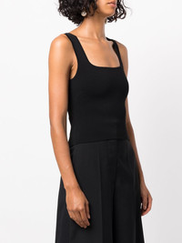square neck vest top Highlights - Jet black - Square neck - Sleeveless - Square open back - Straight hem Imported Composition Viscose 100% SIZE & FIT Model measurements Height 5 ft 10 in(1.77 m) Bust/Chest 31.88 in(81 cm) Hips 34.64 in(88 cm) Waist 24.01 in(61 cm) FittingInformation This piece fits true to size. We recommend you get your regular size Cut for a close fit Made with a mid-weight fabric