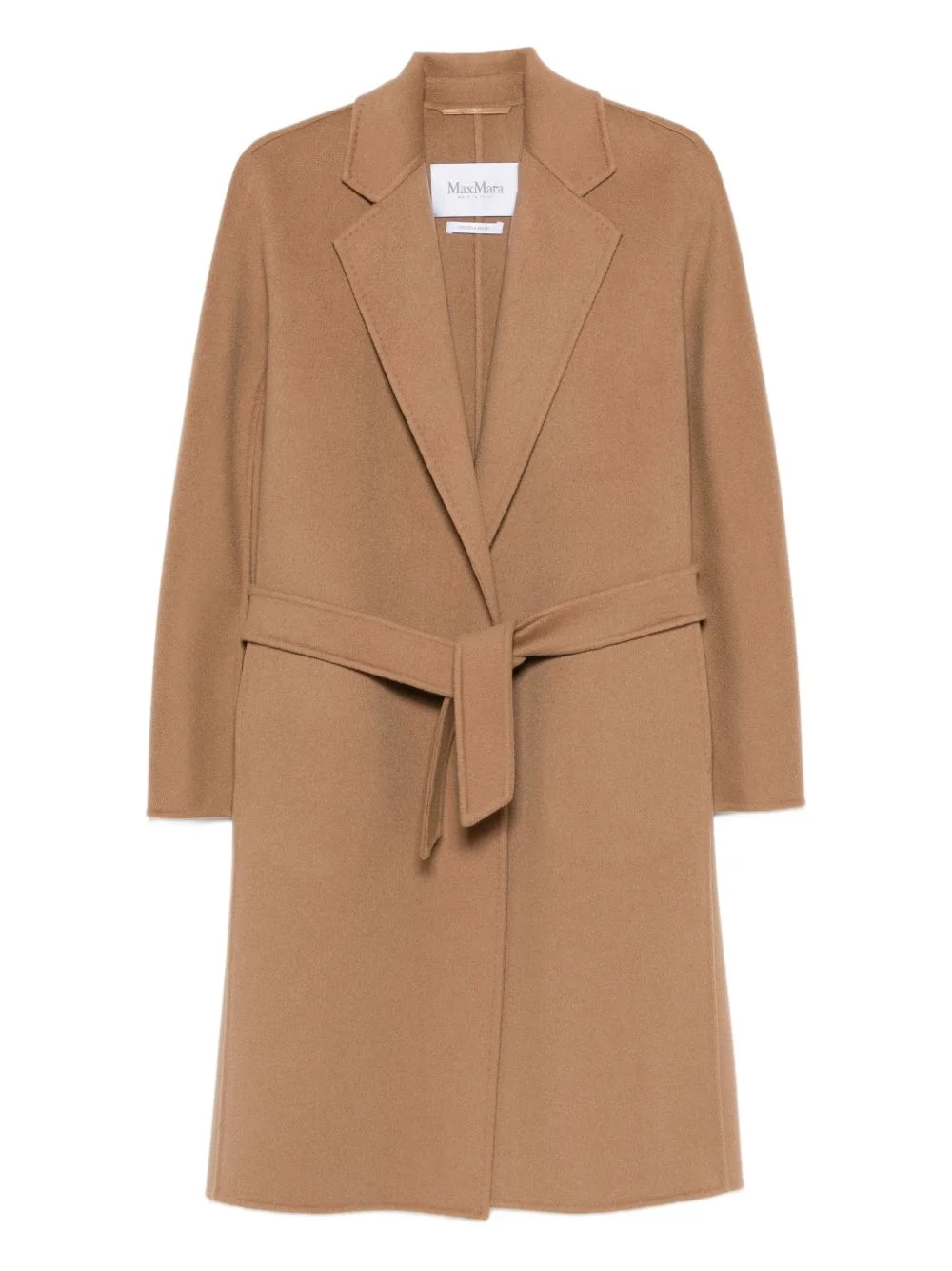 Aceri tie-waist coat Highlights - Camel brown - Lapel collar - Tie belt - Long sleeves - Slip pockets Imported Composition Cashmere 100% SIZE & FIT Model measurements Height 5 ft 11 in(1.8 m) Bust/Chest 32.28 in(82 cm) Hips 36.22 in(92 cm) Waist 25.19 in(64 cm) Washing instructions Dry Clean Only