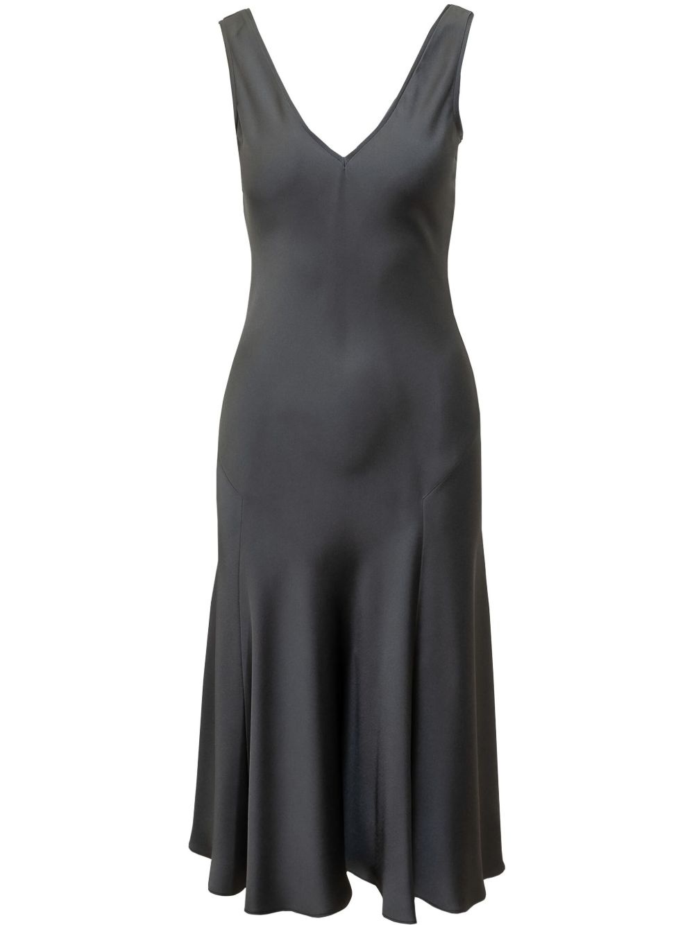 Acqui midi dress Highlights - Charcoal grey - Plunging v-neck - Sleeveless - Ruffled detailing Made in Italy Composition Acetate 71%, Viscose 29% Washing instructions Read Manufacturer Guidelines