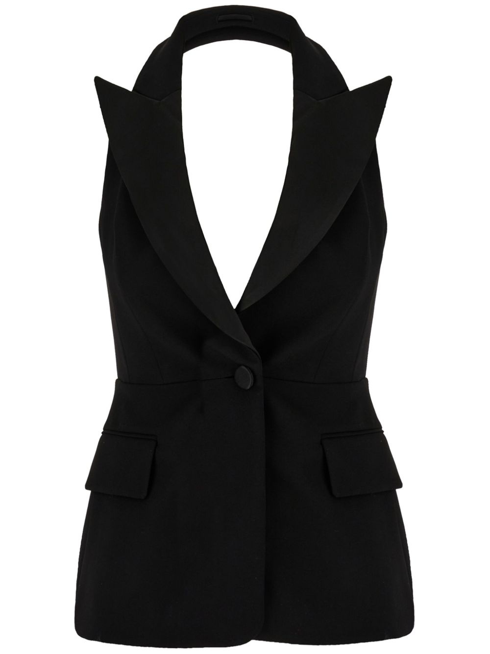 Aletta vest Highlights - Black - Stretch-wool - Front button fastening - Wide peak lapels - Sleeveless - Two side flap pockets - Pleat detailing Made in Italy Composition Lining: Acetate 70%, Cupro 30% Outer: Viscose 98%, Elastane 2% Washing instructions Read Manufacturer Guidelines