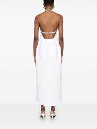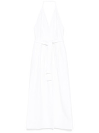 Ancona maxi dress Highlights - White - Concealed front press-stud fastening - Detachable and adjustable waist belt - Two side inset pockets - Open back Made in Italy Composition Cotton 94%, Spandex/Elastane 6% SIZE & FIT Model measurements Height 5 ft 11 in(1.8 m) Bust/Chest 31.49 in(80 cm) Hips 36.61 in(93 cm) Waist 24.4 in(62 cm) FittingInformation Designed for a close fit at the chest and waist with a loose fit at the hip The adjustable tie waist gives a more adaptable and personalised fit Made from a midweight stretch fabric, this piece offers elasticity and flexibility when worn