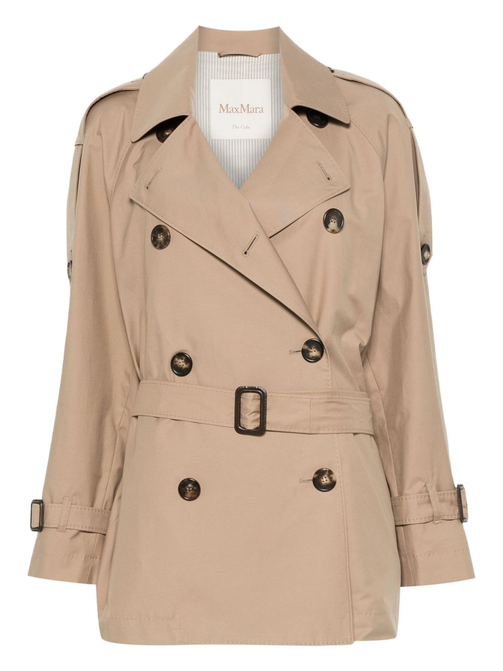 belted double-breasted coat Highlights - Beige - Double-breasted - Button fastening - Belted waist - Long sleeves - Buttoned cuffs Imported Composition Outer: Cotton 69%, Polyester 31% Lining: Polyester 100% SIZE & FIT Model measurements Height 5 ft 10 in(1.78 m) Bust/Chest 33.85 in(86 cm) Hips 36.61 in(93 cm) Waist 26.77 in(68 cm) Washing instructions Machine Wash