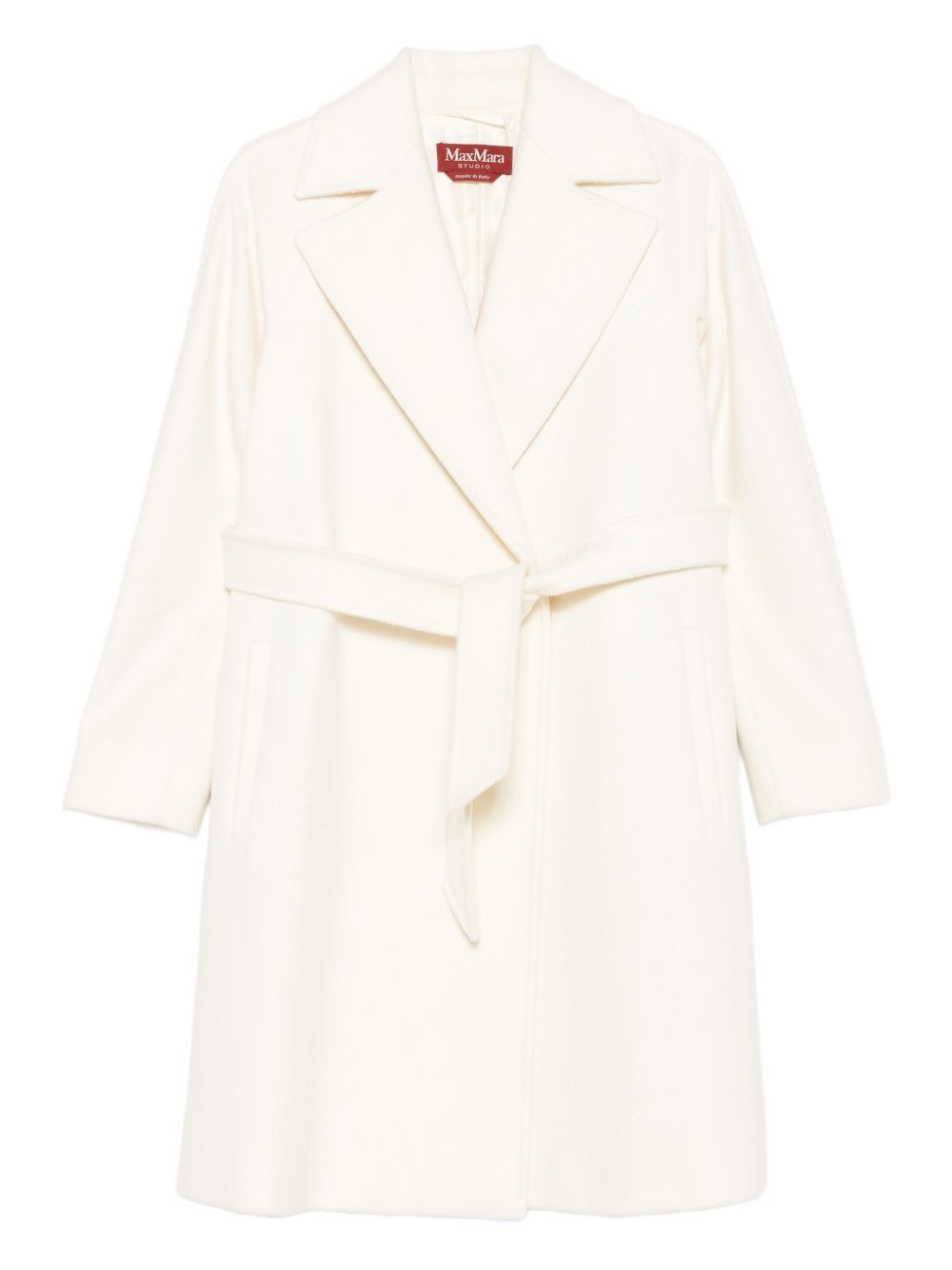 belted wrap coat Highlights - White - Wrap fastening - Self-tie belt - Long sleeves - Notched lapels - Straight hemline Made in Italy Composition Lining: Viscose 100% Outer: Virgin Wool 100% SIZE & FIT Model measurements Height 5 ft 11 in(1.8 m) Bust/Chest 31.49 in(80 cm) Hips 36.61 in(93 cm) Waist 24.4 in(62 cm) Washing instructions Dry Clean Only