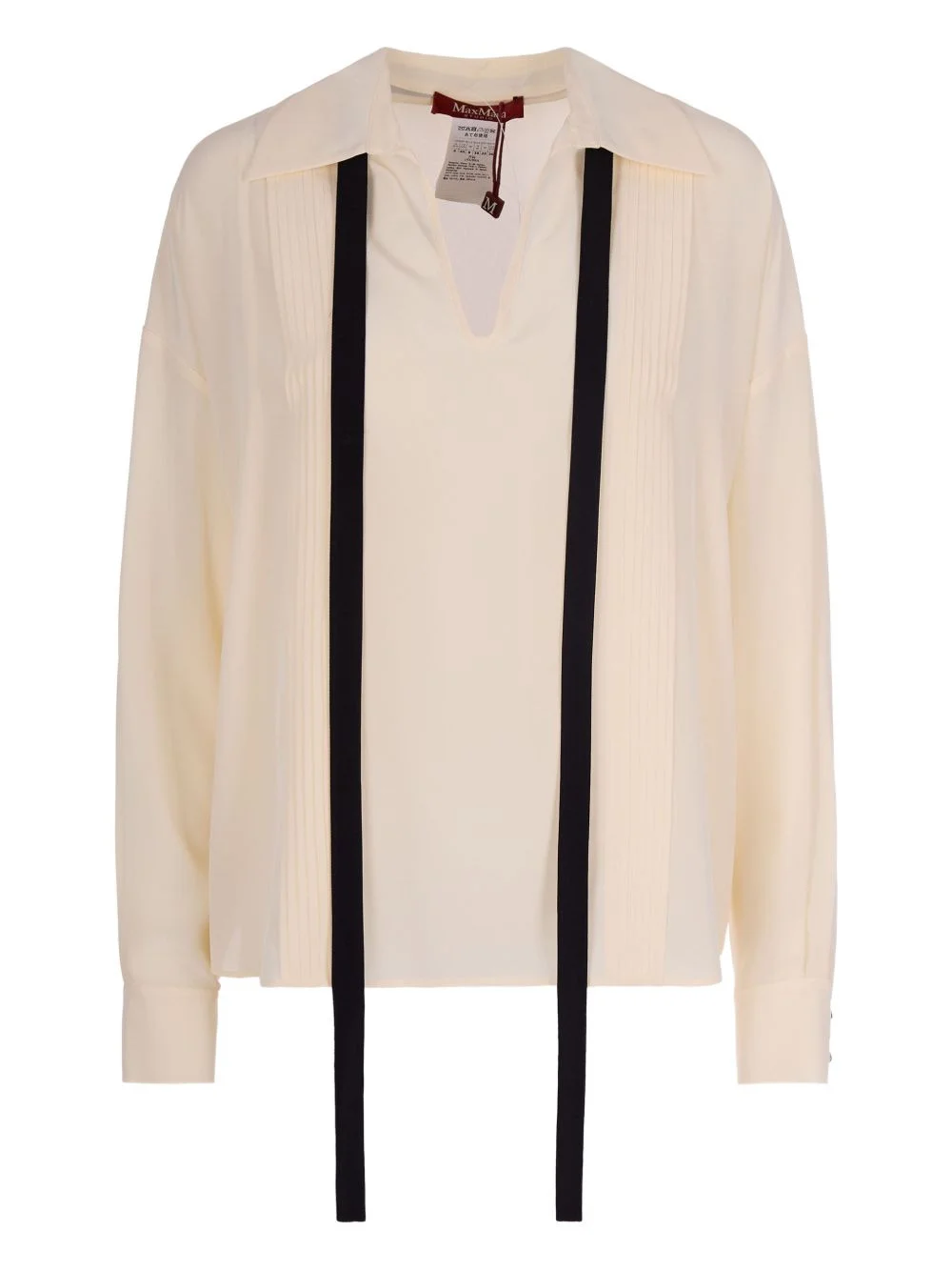 bow-tie silk blouse Highlights - Beige - Bow tie - Long sleeves - Point collar - Open drop-neck collar Imported Composition Silk 100% Washing instructions Specialist Cleaning