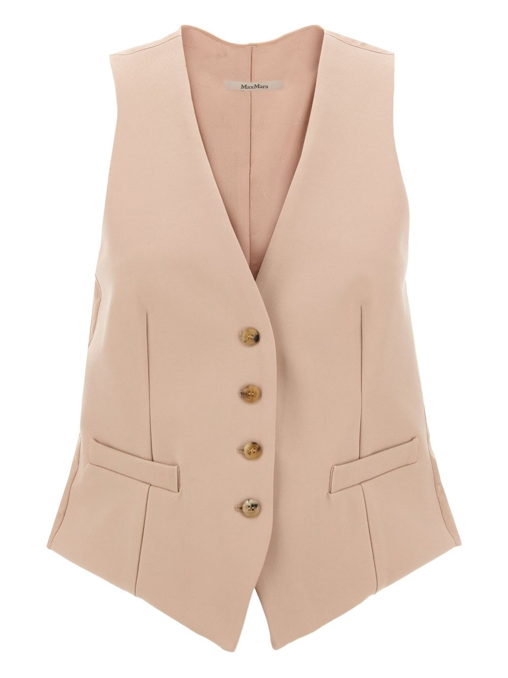 button-fastening drawstring vest Highlights - Pink - Single-breasted button closure - Adjustable drawstring - Back hem - Welt pockets Imported Composition Acetate 65%, Polyester 35% Washing instructions Read Manufacturer Guidelines
